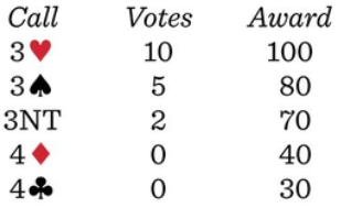 | 3♥ | 3♠ | 3NT | ||