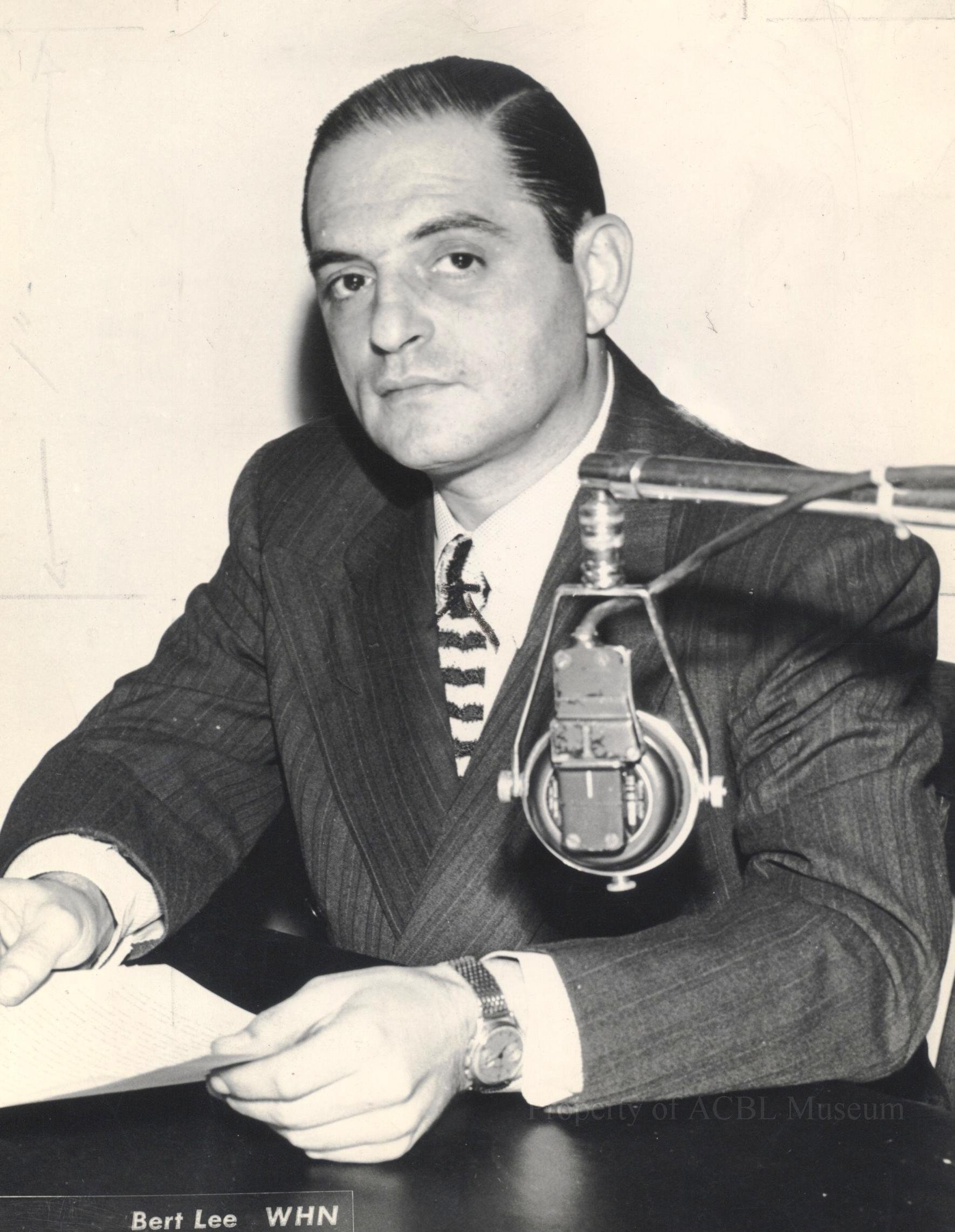 Professionally known as Bert Lee, Lebhar had a national reputation as a sportscaster and later as a bridge player and administrator. In private life he owned radio and television stations in Florida. Perhaps his greatest achievements arose from his work as ACBL treasurer (1945-1947) and as a member of the Steering Committee. In the late 1940s, Lebhar was instrumental in ACBL modernization. He was perhaps the first man to visualize ACBL’s vast potential for expansion. His farsighted efforts were recognized when he was made ACBL Honorary Member in 1963. A founder of Greater New York B.A. and its first president in 1948, he donated the Lebhar Trophy to ACBL. Lebhar was named Life Master #61 in 1946 and was a two-time North American champion.
