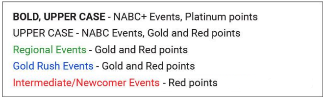 | NABC (Gold and Red points) | $25 | $35 |